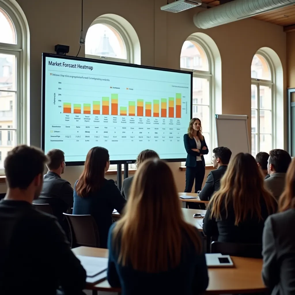 Klientům prezentujeme výsledky analýzy ve formě reportů a vizualizací, včetně naší Heatmapy předpovědi trhu. Zde diskutujeme doporučení a strategické kroky.